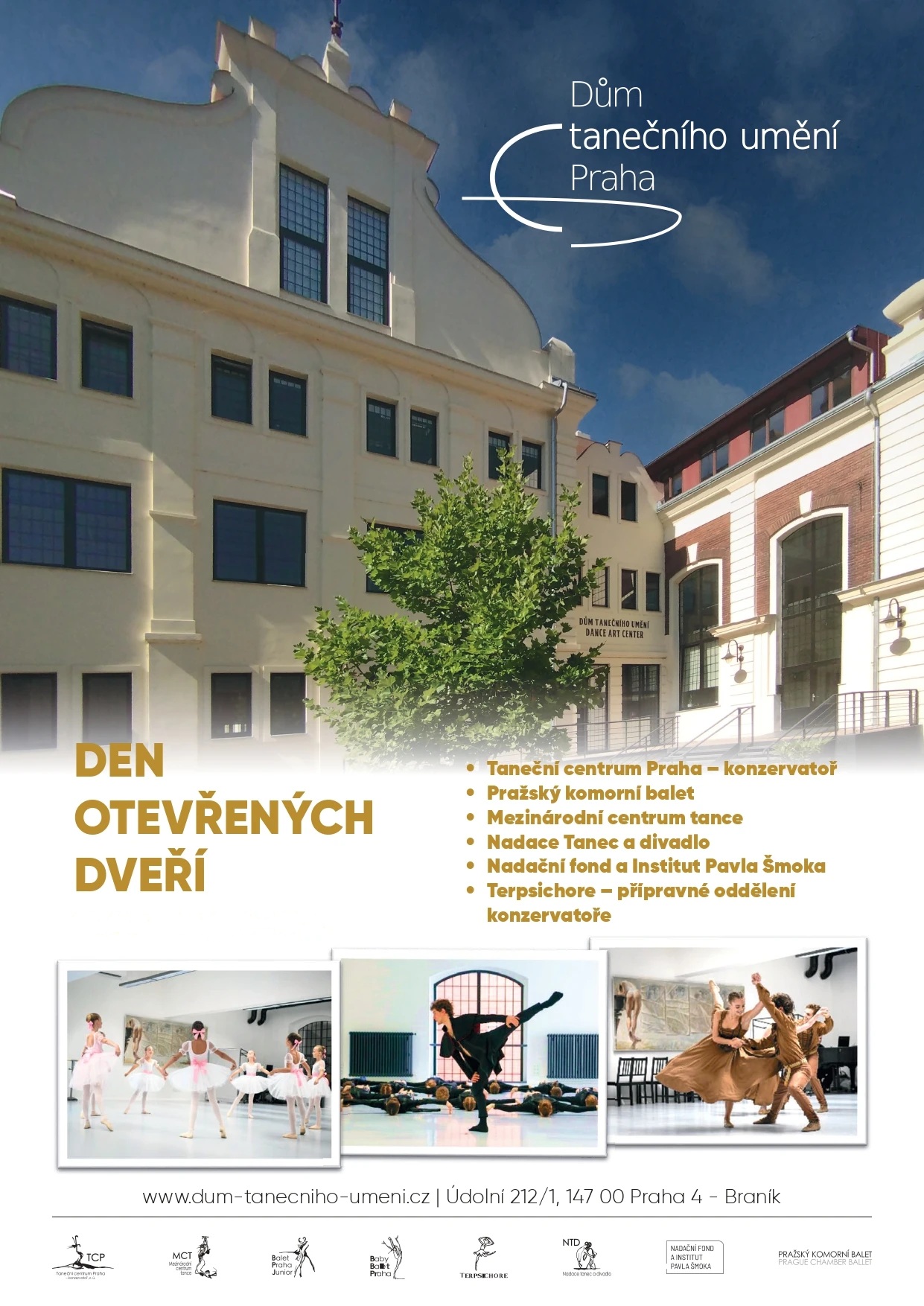 Zveme vás na Dny otevřených dveří, které se v průběhu roku pravidelně konají v prostorách Domu tanečního umění. Přijďte nahlédnout do prostředí profesionální taneční konzervatoře, poznat atmosféru výuky a zjistit více o studiu i každodenním životě našich studentů.