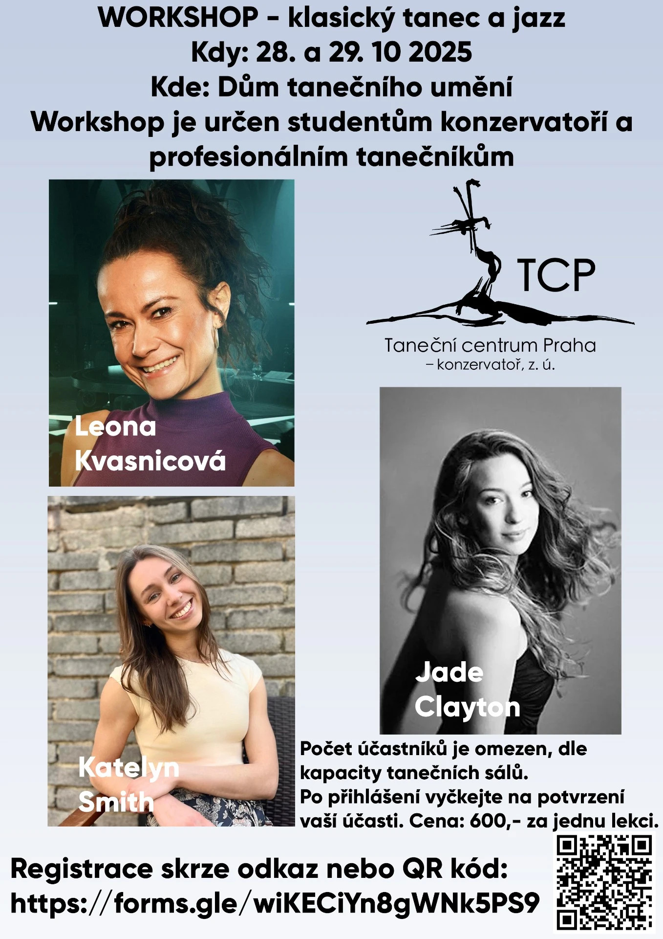 Dvoudenní workshop zaměřený na klasický tanec a jazz pod vedením lektorů Leony Kvasnicové, Katelyn Smith a Jade Clayton.