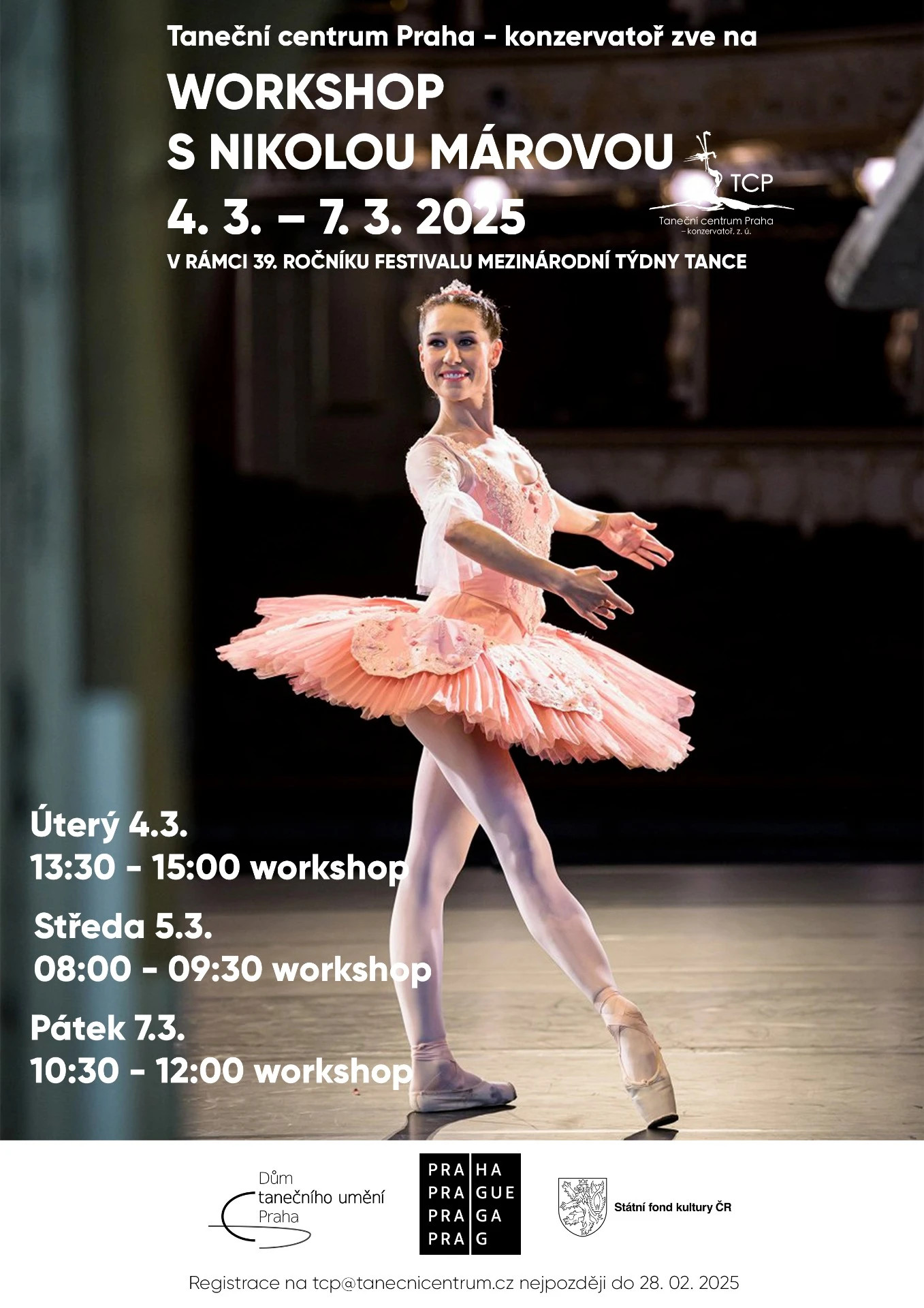 Nikola Márová, dlouholetá sólistka Národního divadla, kombinuje klasickou baletní techniku s moderním výrazem. Účastníci workshopu měli možnost prohloubit taneční dovednosti, zlepšit techniku a načerpat inspiraci z jejího zkušeného přístupu k pohybu a choreografii.