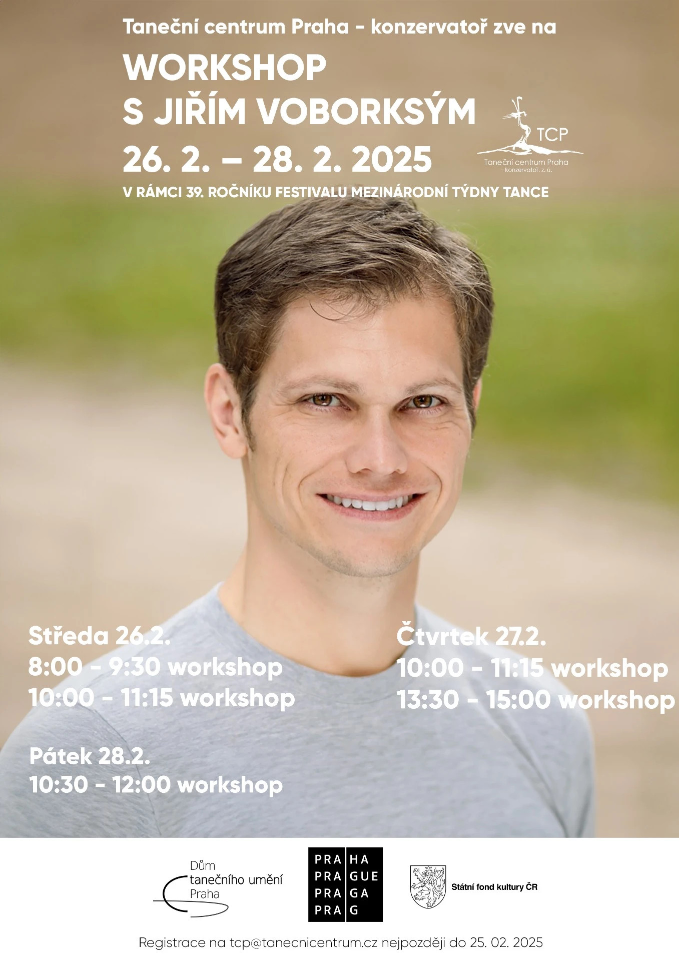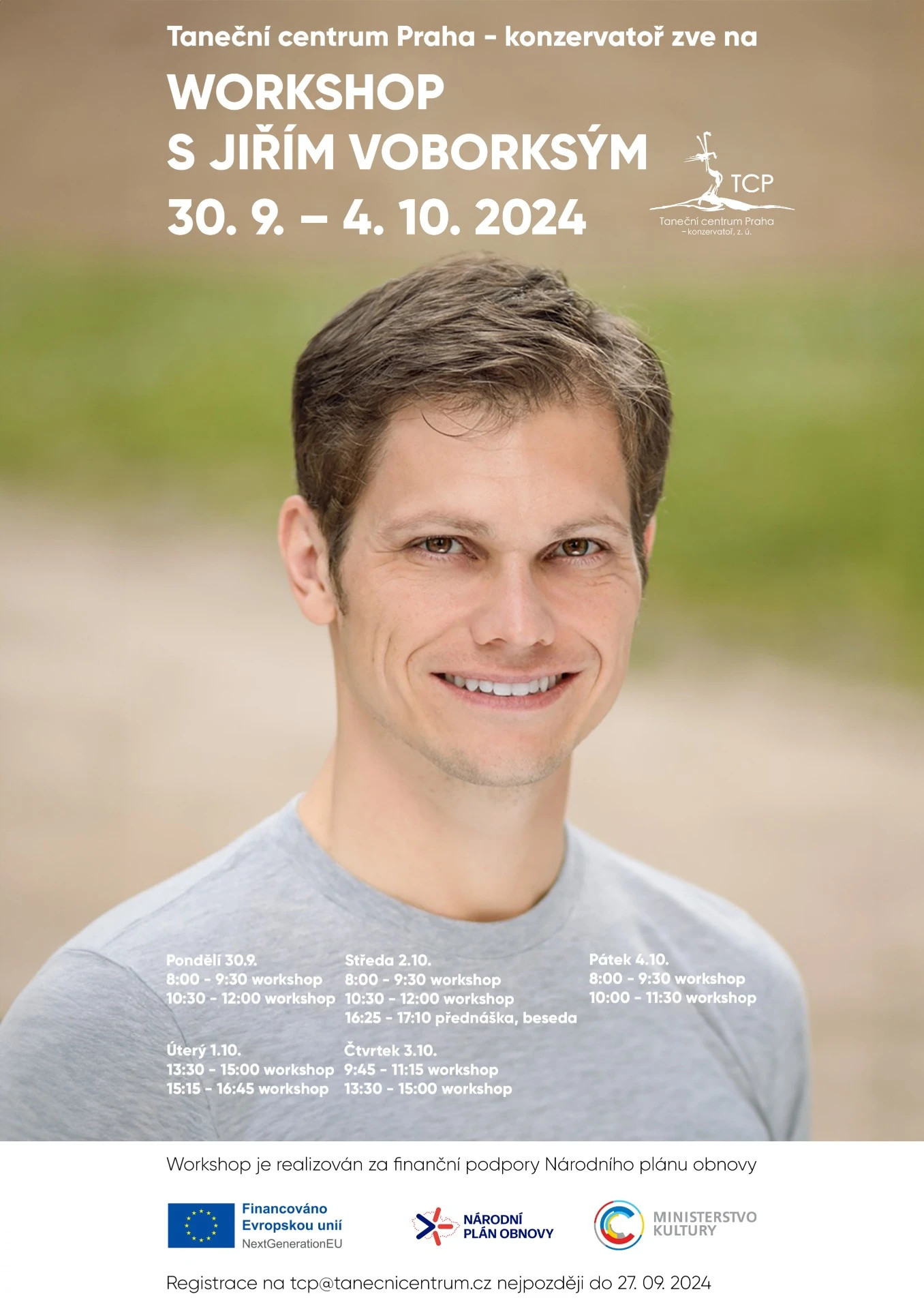 Jiří Voborský je zkušený pedagog a interpret současného tance, známý propojením technické preciznosti s výrazovou volností. Účastníci workshopu měli možnost rozvíjet pohybovou techniku, improvizaci a kreativní vyjádření pod jeho vedením.