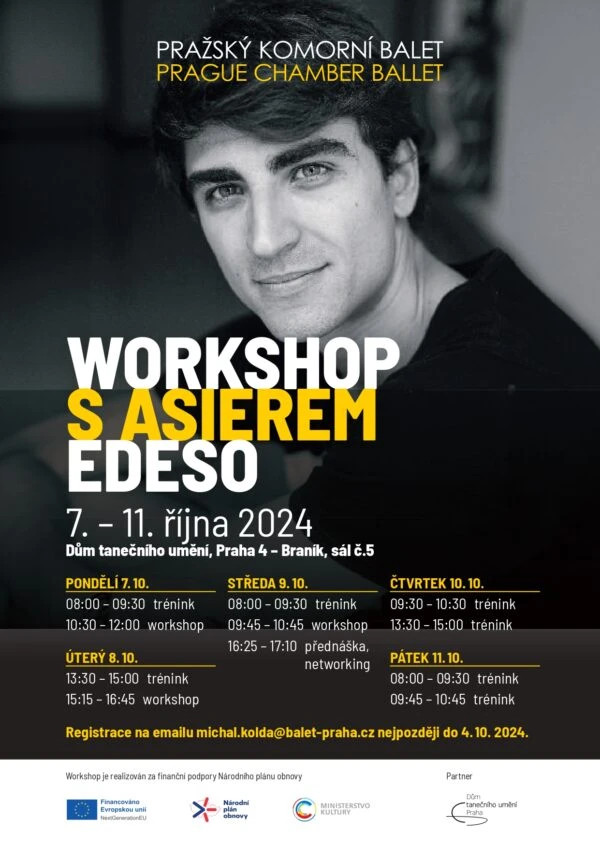 Ve dnech 7. – 11. října 2024 proběhl workshop současného tance vedený španělským tanečníkem a choreografem Asierem Edeso.
